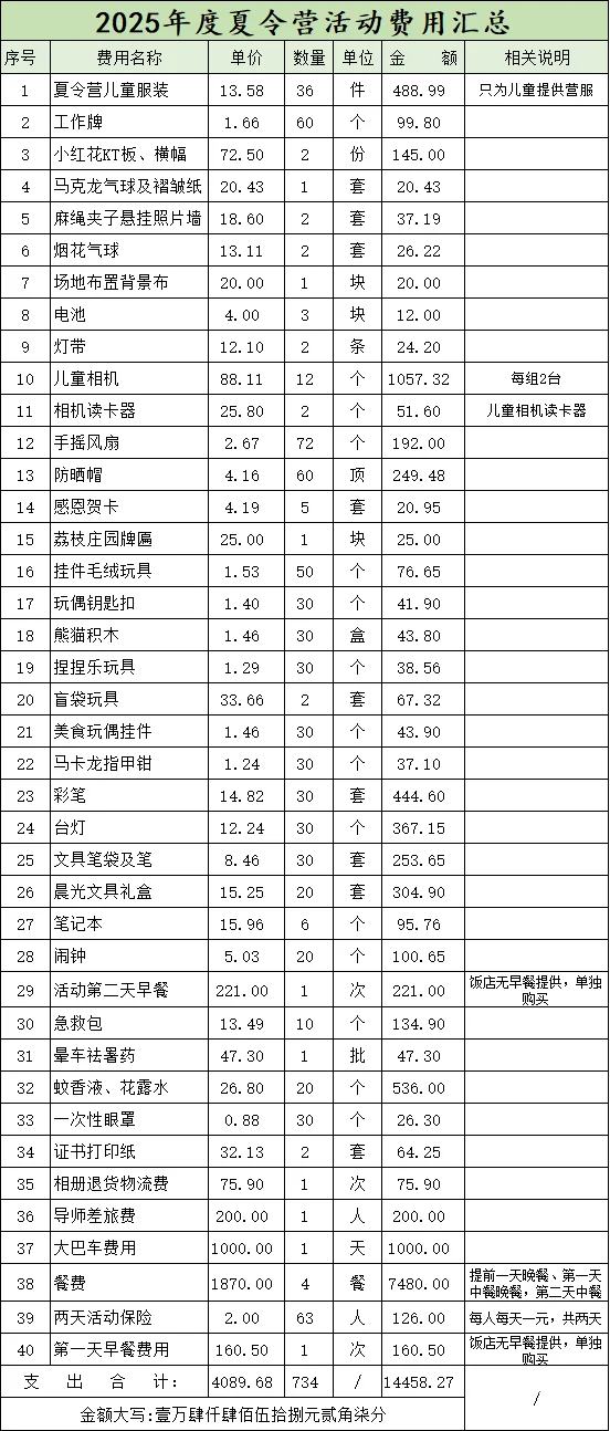 感谢您对惠州市慈航公益协会2025年度“少年儿童心向党·牵手护航伴成长”儿童赋能成长夏令营活动的关心和支持,经过大家的慷慨支持和努力,我们夏令营公益项目已圆满完成。在此,我们郑重地向大家公示项目的财务状况,以保障资金的透明使用和善款的合理利用。