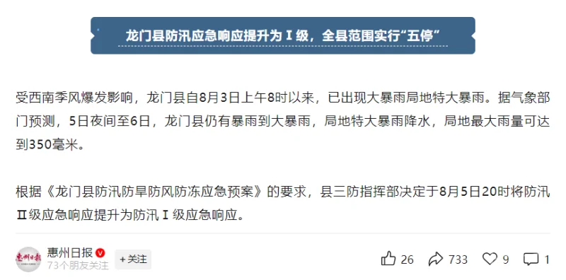 近日,惠州市龙门县遭遇持续强降雨,部分村居出现内涝及次生灾害。针对龙门等地洪涝灾害,为响应市三防指挥部防汛Ⅰ级应急响应机制,精准了解受灾情况、对接援助需求,惠州市慈航公益协会于8月7日迅速行动,联合中国乡村发展基金会(以下简称“乡基会”)共赴永汉镇镇政府,开展人道救援与社会应急协同行动。
