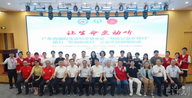 2025年7月9日下午,广东省国际生命科学基金会 “慈航公益乡情行”助力“听到的美好”公益项目捐赠仪式,在惠州市第三人民医院院本部7号楼六楼学术报告厅举行。