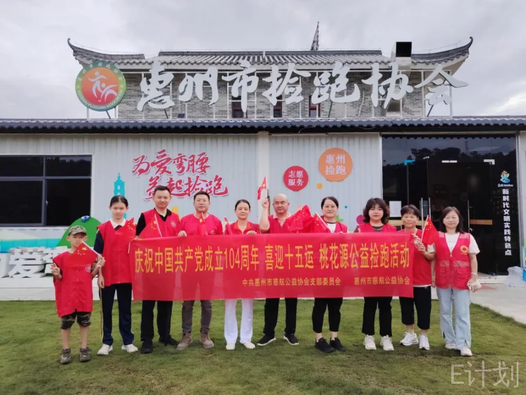 本次活动由惠州市慈航公益协会等 15 家单位联合主办,将红色精神传承与绿色环保理念深度融合,既是向党的 104 周年华诞献上的诚挚祝福,也为即将到来的第十五届全运会营造浓厚的社会氛围。