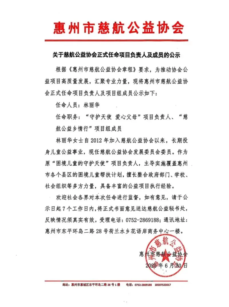 【慈航-通知公告】关于慈航公益协会正式任命项目负责人及成员的公示