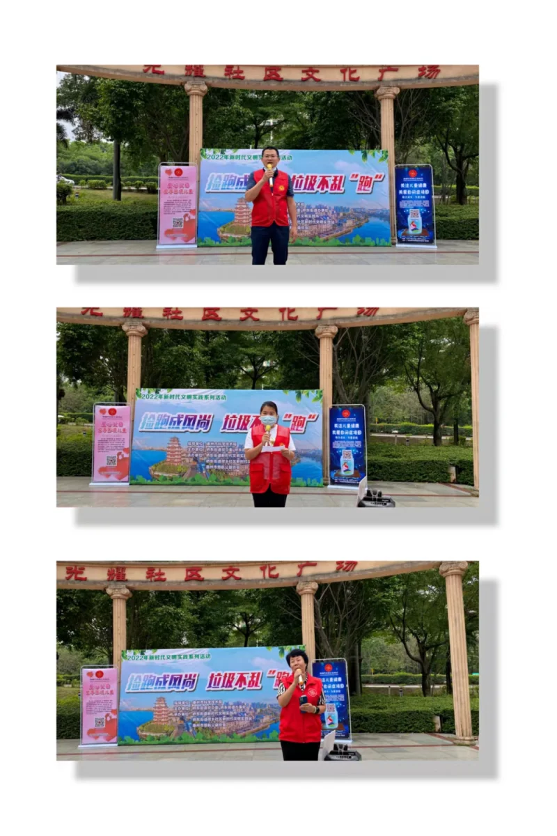 启动会在荷兰水乡文化广场召开,桥东街道党工委委员陈少驹致开幕词,我捡跑、我文明、我快乐、我自豪;垃圾不落地,惠州更美丽,大家一起来,文明更精彩一起来捡跑,健康又环保。荷乡社区居委会党组书记刘彩华在发言中提到,在社区和居民们共同努力下,荷兰水乡获得了“2021年惠州市绿色社区”荣誉,今天一大早看到这么多家人们来参加这次有意义的公益捡跑活动,真的很感动,对建设好美丽荷乡更有信心了。惠州市慈航公益协会常务副会长敖志梅表示:今后将继续从各个方面加强与街道及社区合作,共同推动桥东志愿服务的发展。