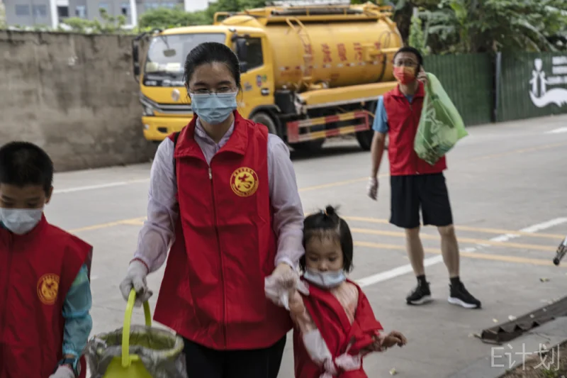 随后,来自40个家庭,100多人组成的亲子团,分成四队,在慈航公益志愿者领队的带领下按预定路线出发,沿路捡拾垃圾,路上别出心裁设计了两个打卡点,一个是家庭亲子宣传队,由“环保小天使”向路人发放垃圾分类宣传折页,同时用她们稚嫩的童音进行垃圾分类宣讲,孩子用她们的认知和誓言,影响并感染着大人们,重新审视垃圾分类的意义和作用。